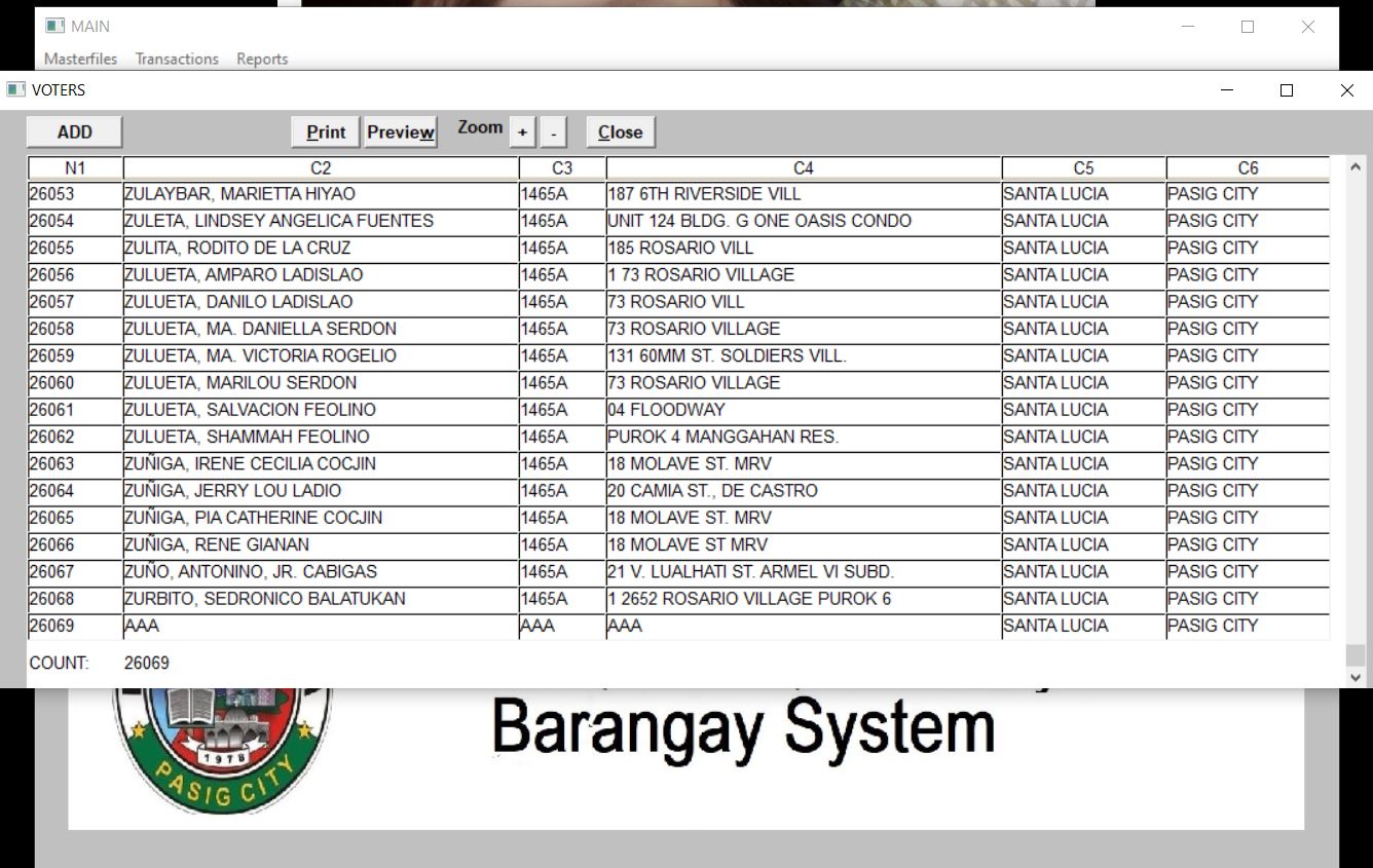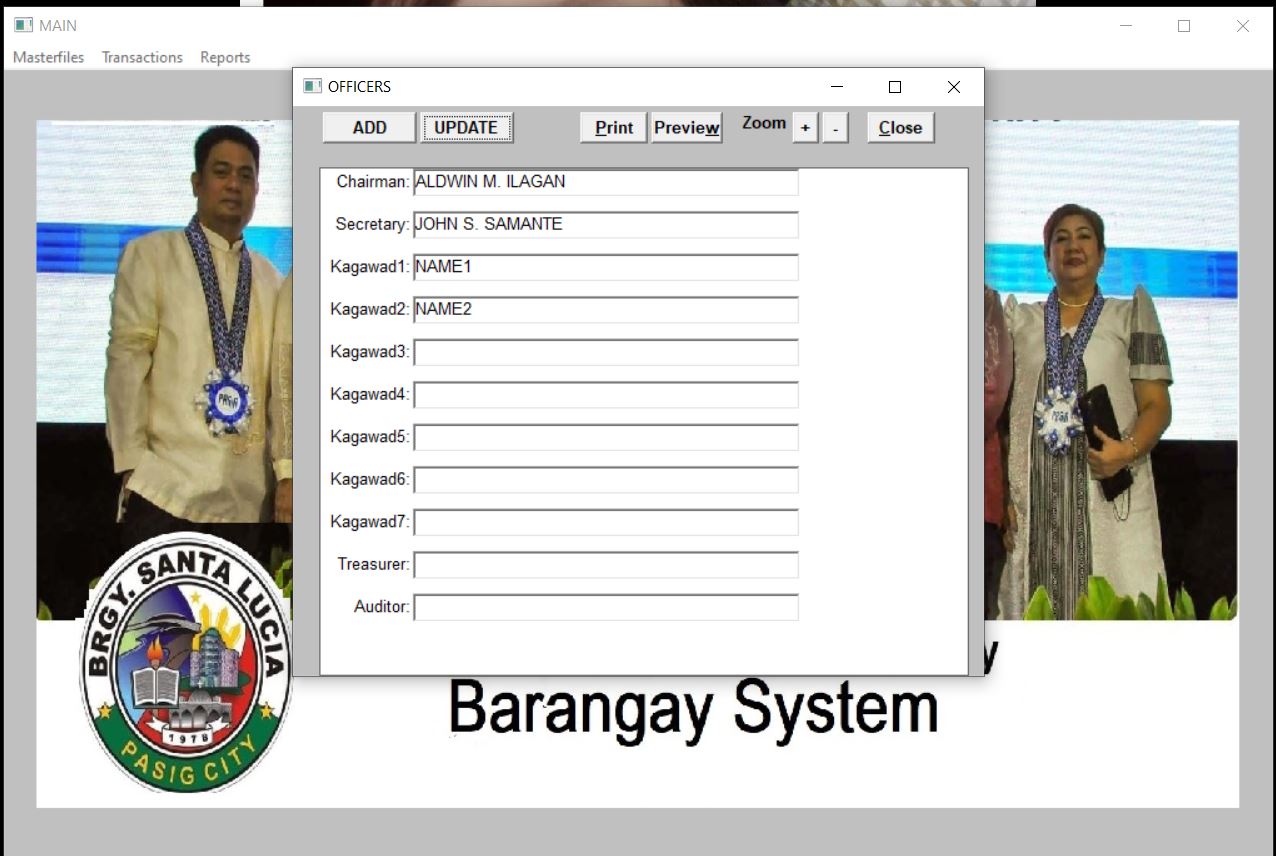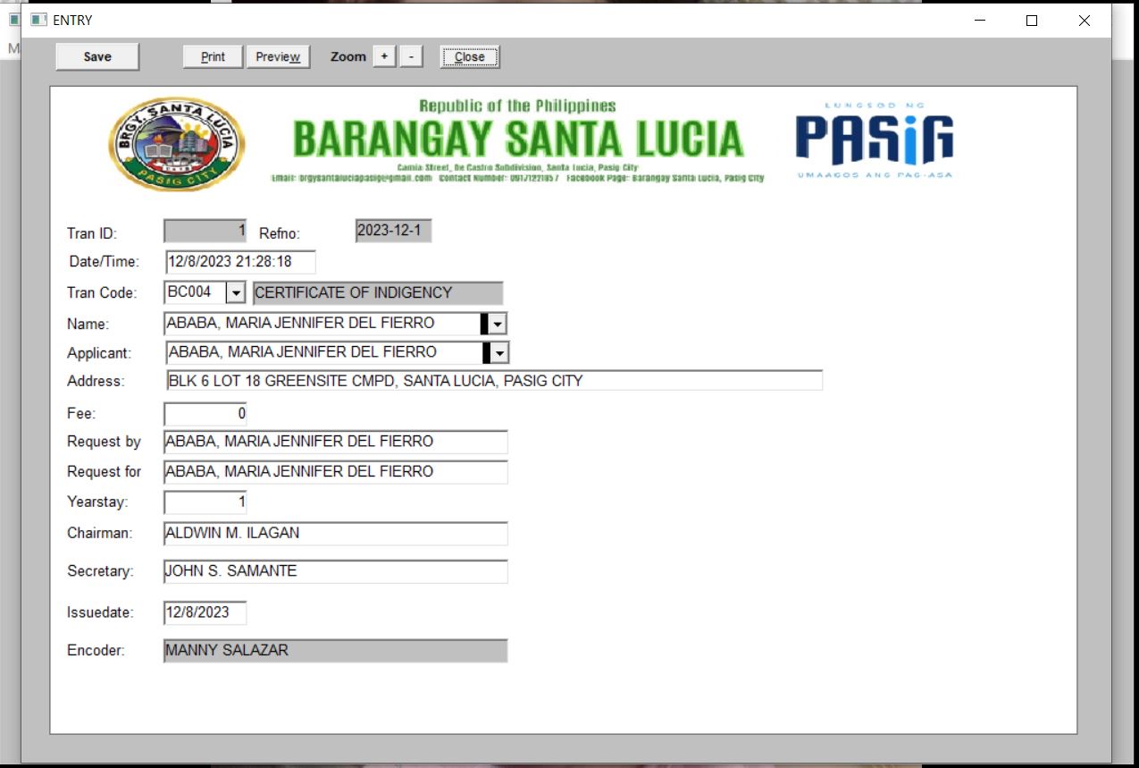 Business Permit & License of the Barangay System The Business Permit and License module builds and updates the LGU's business/barangay permit and establishment master files. The printing is very fast because the name and address of the residents are already loaded from COMELEC pdf. Before the whole process took up 30 minutes to 1 hour of waiting, now it only took 5 to 15 minutes. It also builds up and maintains data on business permit-related transactions which include: new applications and renewals of business permits, and closure of business establishments.